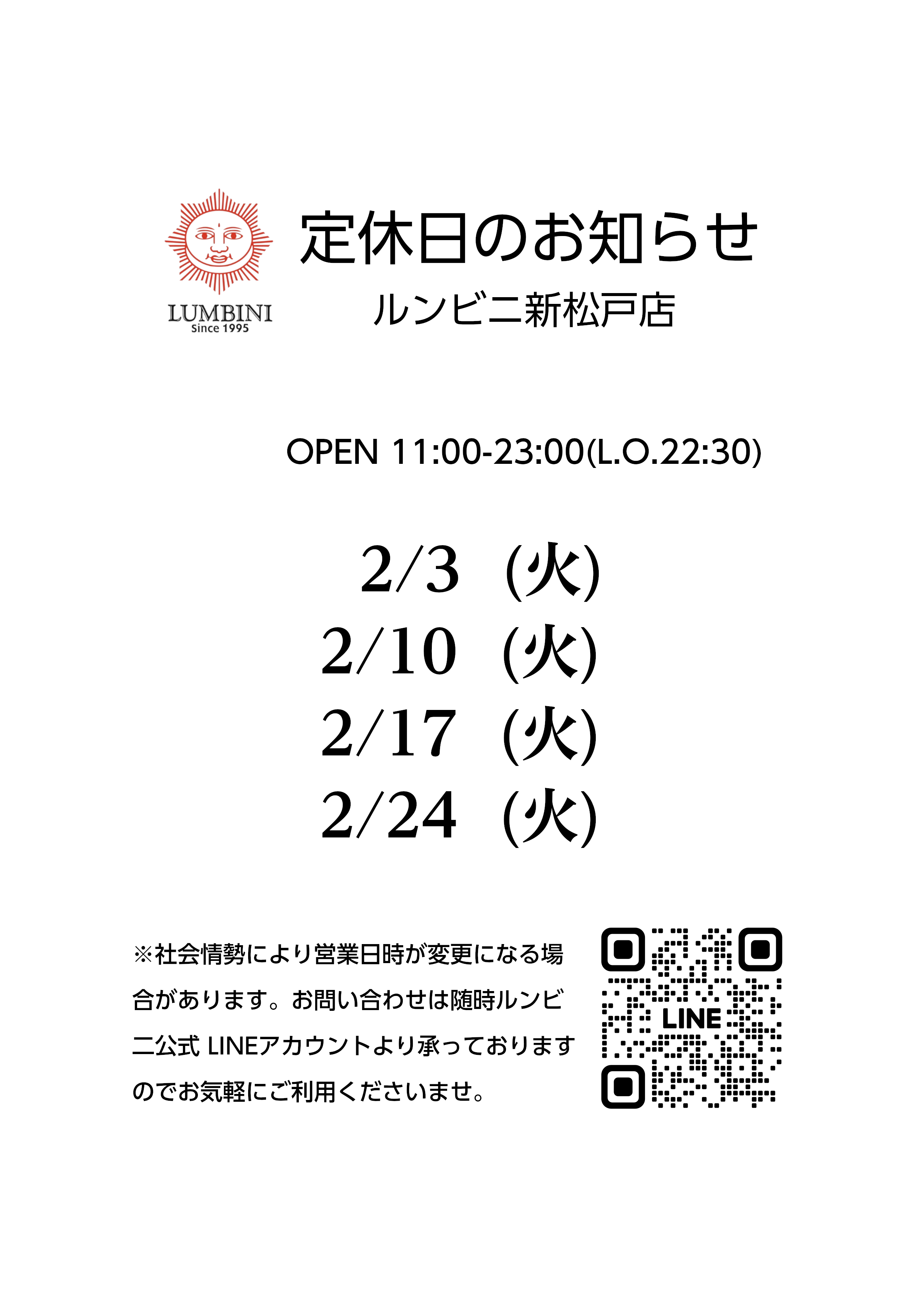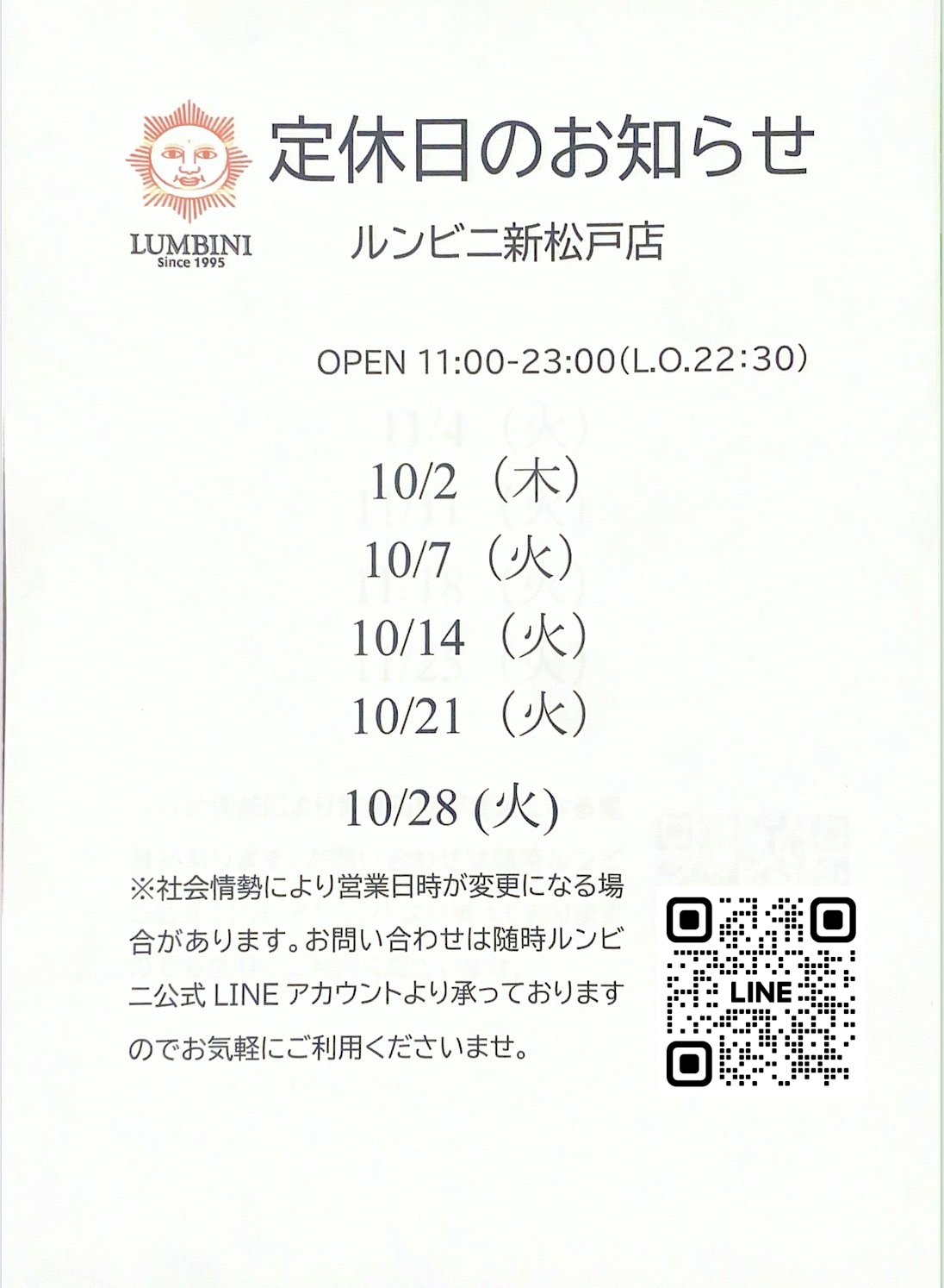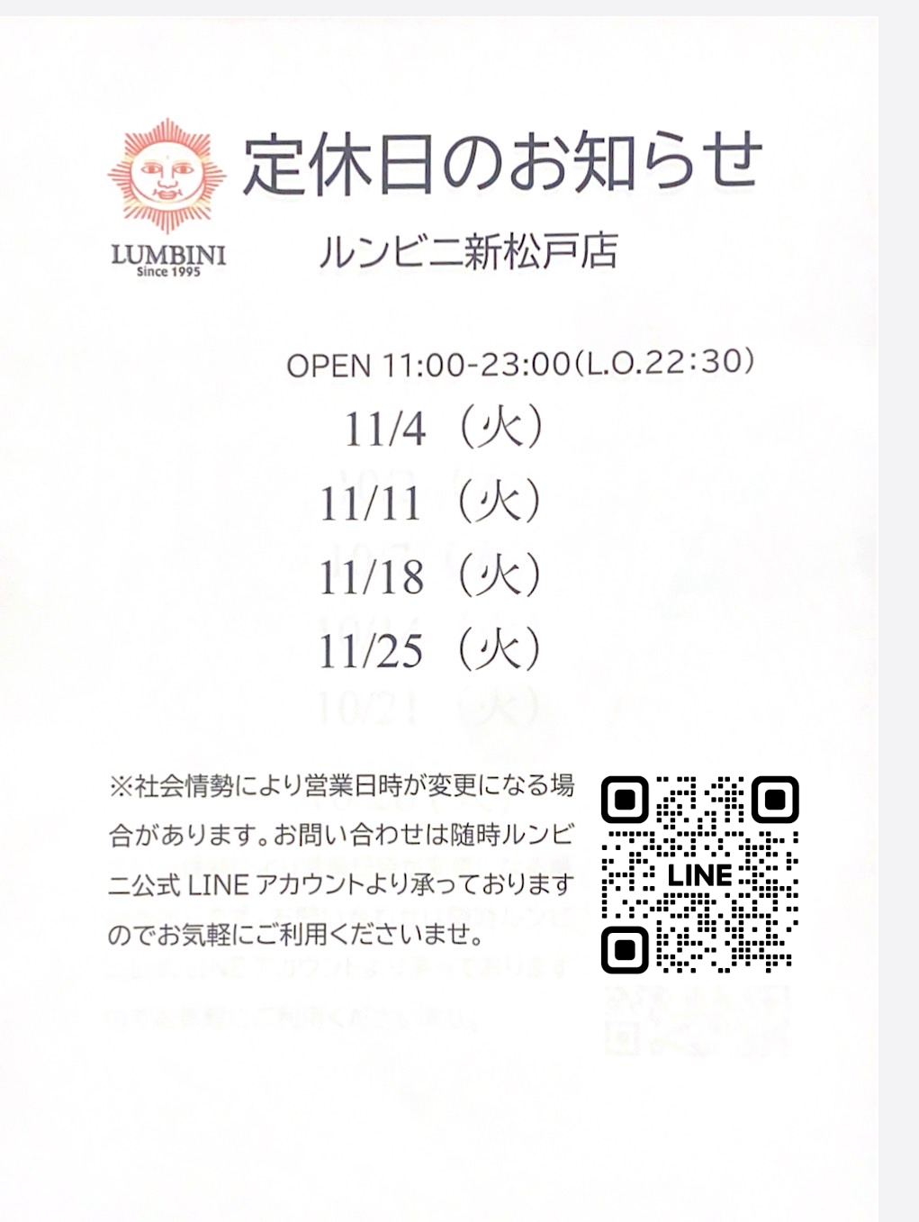 | <店舗名> | アジアンダイニング LUMBINI 新松戸店 |